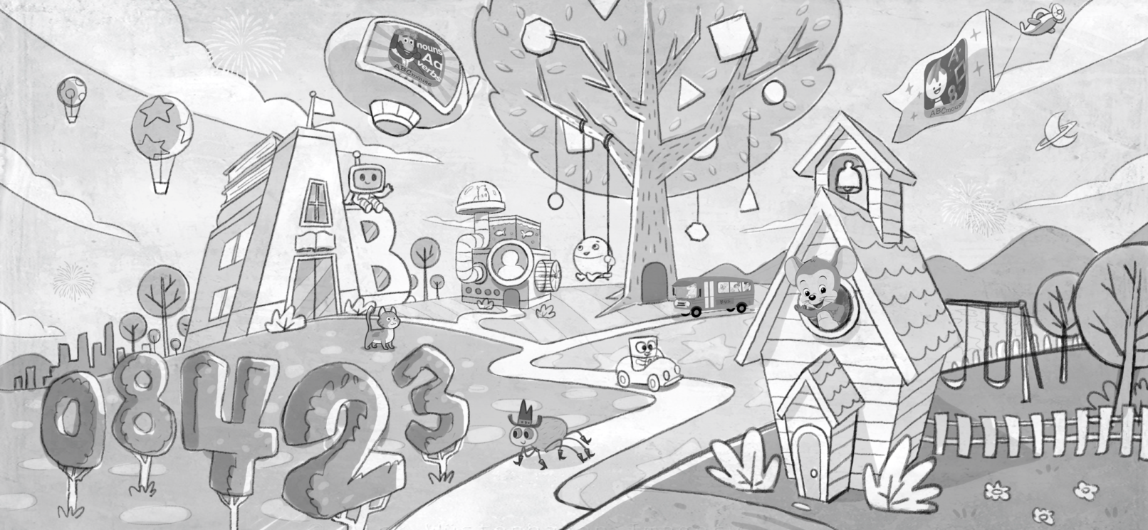 Working with their Art Director, I was tasked with creating a completely new style for the ABCmouse homepage. I love this kind of work where I can make whatever world I want with lots of little surprises in it. Below are some final pieces and other concept sketches that lead to those final colored concepts.